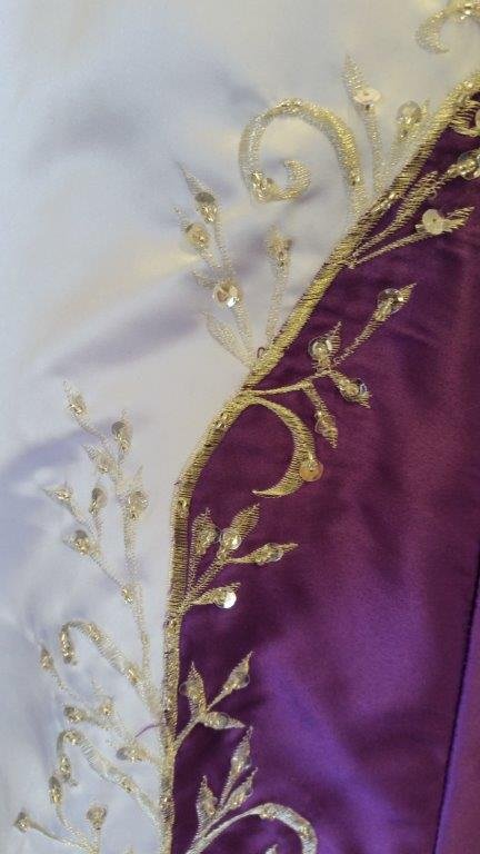 elaborate embroidered red train |