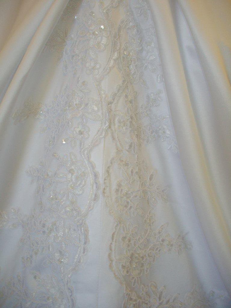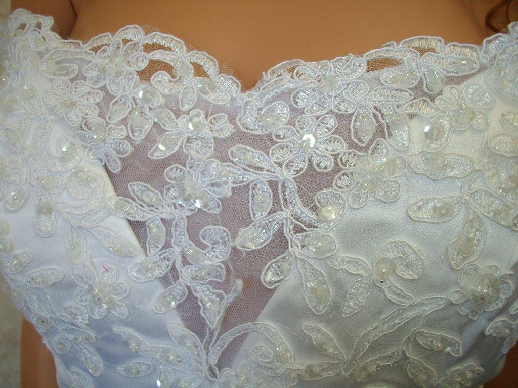 Bridal Gown #1061 $380 View our complete line of wedding dresses, bridal gown selections including A-line, corset, asymmetrical waist, V-neck, sweetheart neckline, strapless, spaghetti strap, off the shoulder gown, chapel train, semi-cathedral train, scalloped train, Basque waist, jacket, ruched skirt, draped skirt, lace, satin, crinkle, tulle, beads, embroidery, sequins, bridal gowns with color, bustled skirt, ball gown, cascading tiers, shirring pick ups, embroidered, long sleeve jacket, trumpet mermaid gowns, gathered skirt, side draped, full bustle, romantic, button/loop closure, scalloped lace, ruffled skirt, elegant lace, classical, modern, vintage, traditional, cascading ruffled skirt, cutaway skirt |