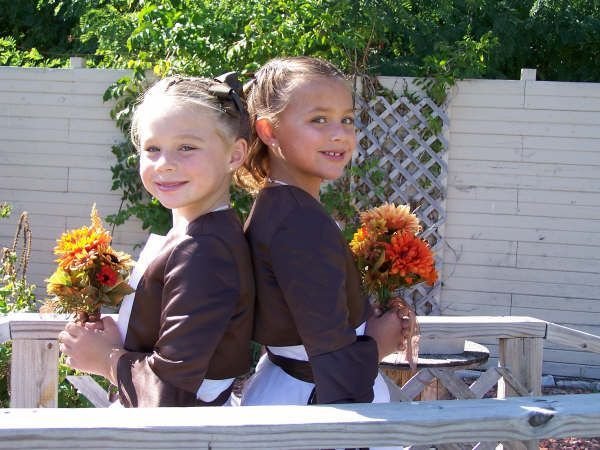 ![]() Ivory flower girl dress with chocolate jacket and ribbon sash |