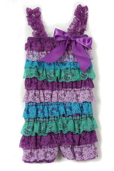 Ladylike lace encircles this sassy romper so that every squirm and wiggle has some frilly, fun flounce. Stretchy elastic around the bottom and straps makes certain that mini darling divas stay cute and covered all day long.roctp326-Cinderella S-1T M-2T, L-3T Lime/Green Fuschia/turquoise Pink/Purple Pink/Fuschia $25.00