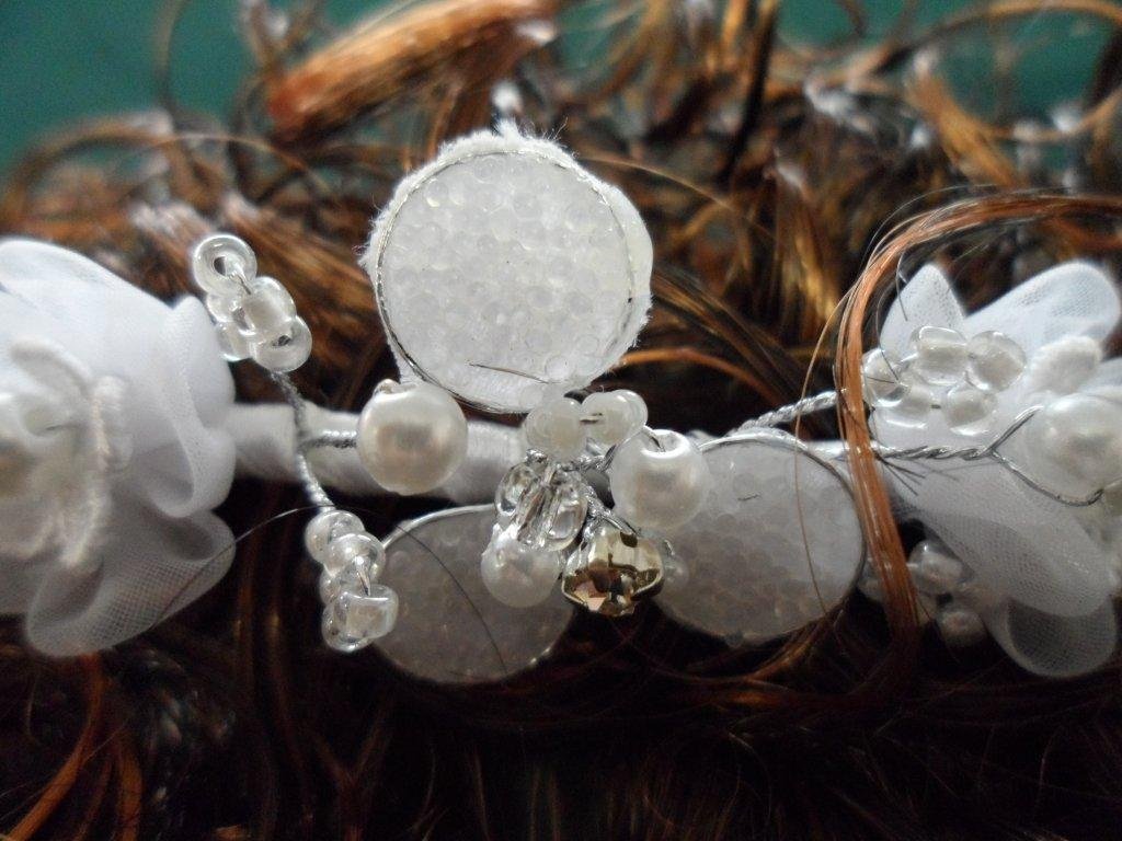 Communion Headpieces - Flower Girl Headpieces. This crown is composed of flowers, sprigs of pearls and clear crystals. White veil attached